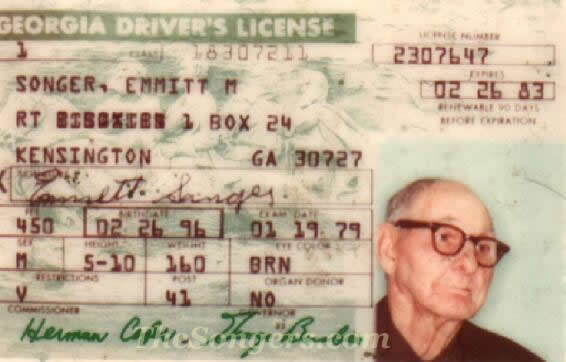 ![]() Emmitt M. Songer's Drivers License |